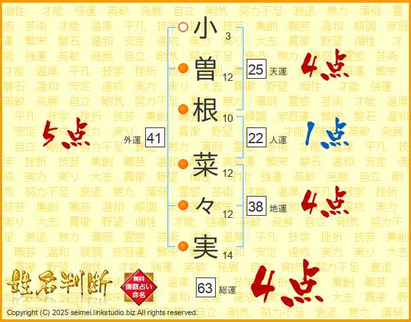 小曽根菜々実さんの総運は63画の4点!