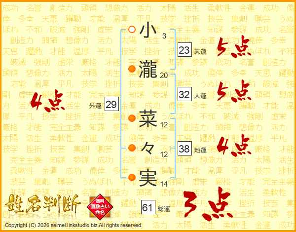 小瀧菜々実さんの総運は61画の3点!
