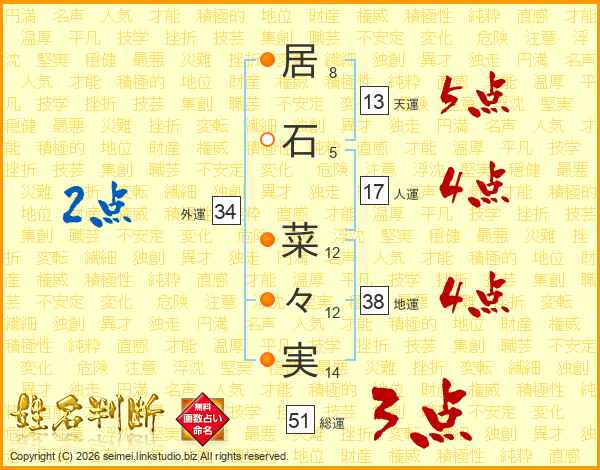 居石菜々実さんの総運は51画の3点!
