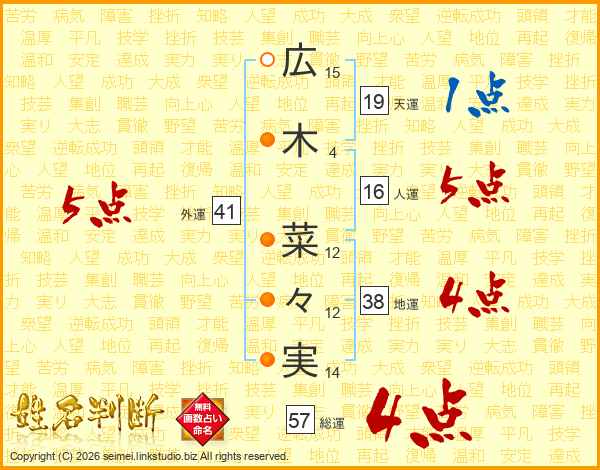 広木菜々実さんの外運は41画の5点!