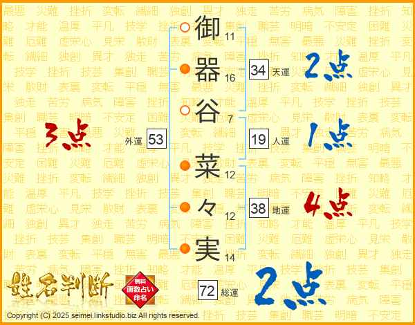 御器谷菜々実さんの総運は72画の2点!