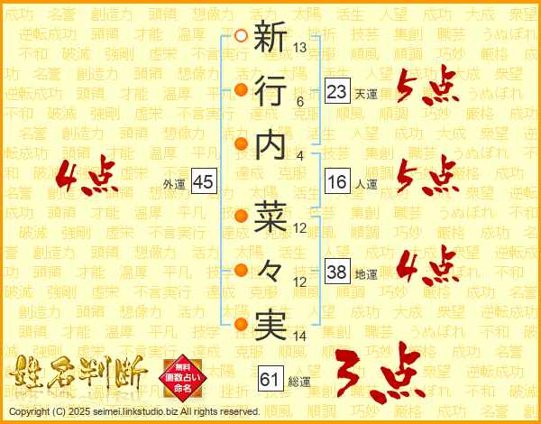 新(13画)行(6画)内(4画) 菜(12画)々(12画)実(14画)