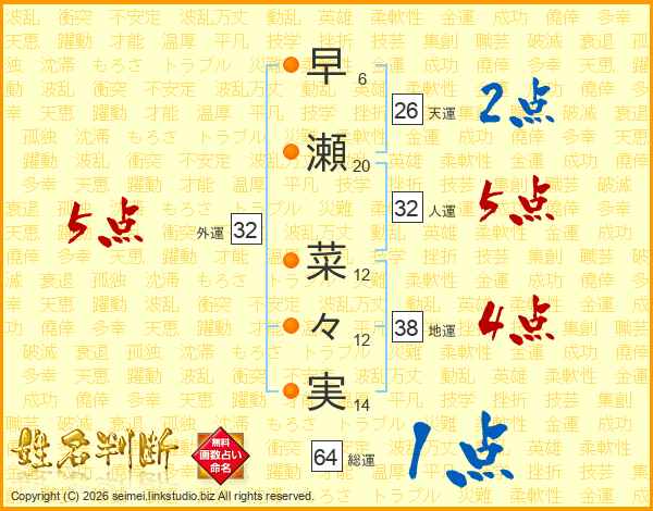 早瀬菜々実さんの総運は64画の1点!
