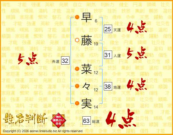 早藤菜々実さんの総運は63画の4点!