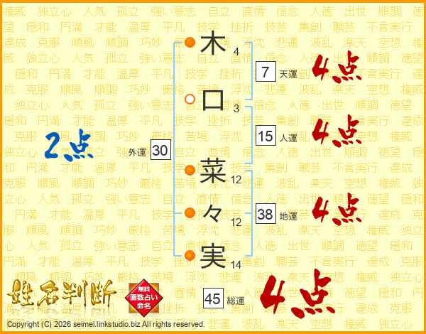 木口菜々実さんの総運は45画の4点