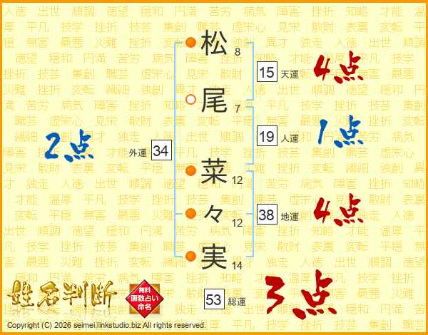 松尾菜々実さんの天運は15画の4点!