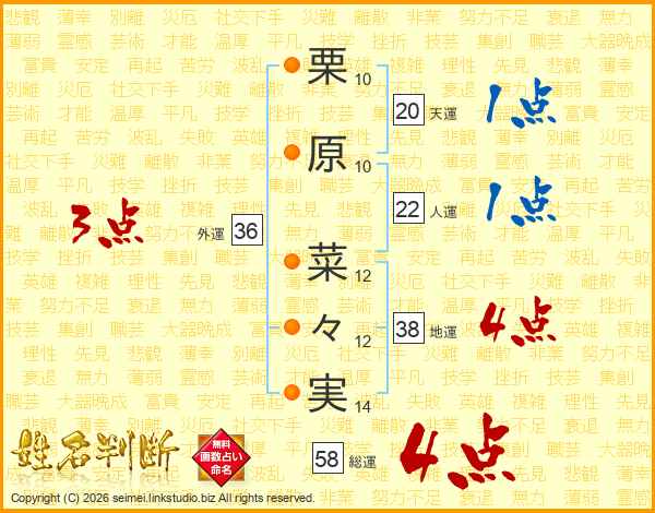 栗原菜々実さんの総運は58画の4点!