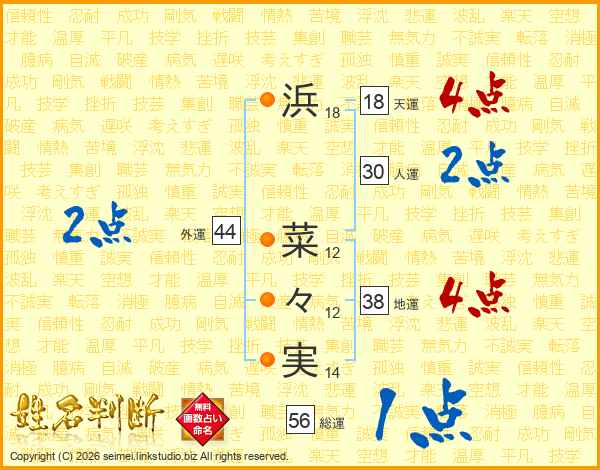 浜菜々実さんの総運は56画の1点!