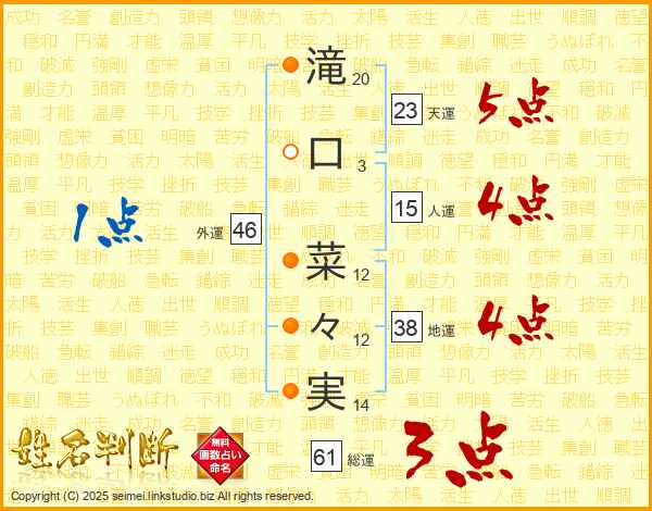 滝口菜々実さんの総運は61画の3点!