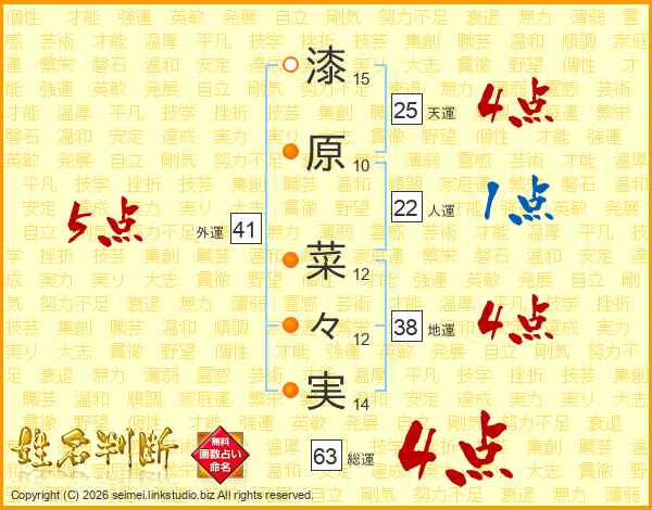 漆原菜々実さんの総運は63画の4点!
