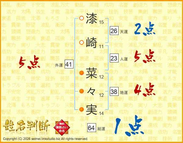 漆(15画)崎(11画) 菜(12画)々(12画)実(14画)
