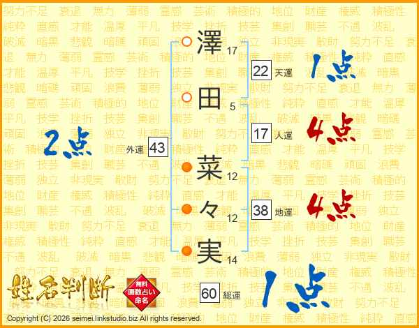 澤田菜々実さんの外運は43画の2点!