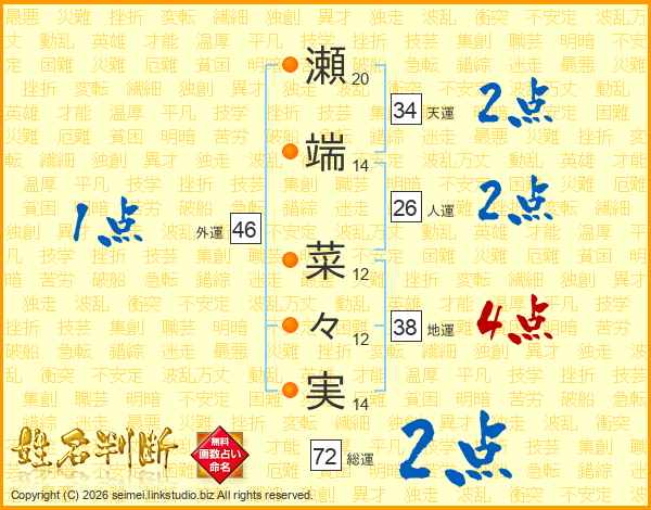 瀬端菜々実さんの外運は46画の1点!