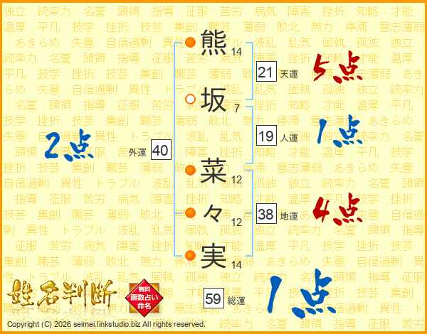 熊坂菜々実さんの天運は21画の5点!