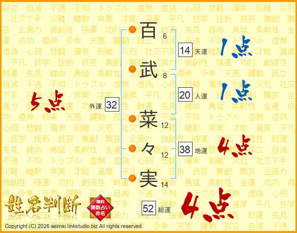 百武菜々実さんの総運は52画の4点!