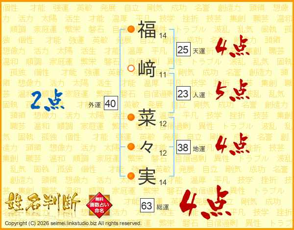 福(14画)﨑(11画) 菜(12画)々(12画)実(14画)