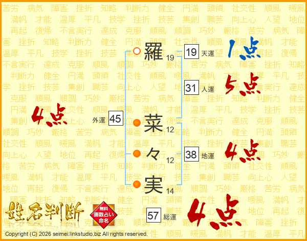 羅菜々実さんの外運は45画の4点!