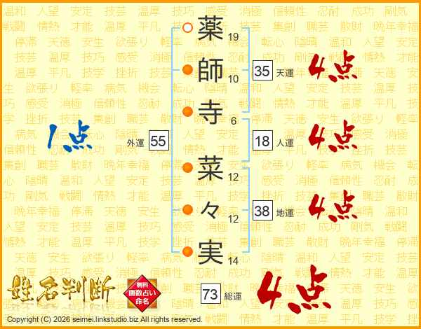 薬師寺菜々実さんの総運は73画の4点!