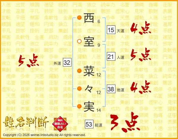 西室菜々実さんの総運は53画の3点!