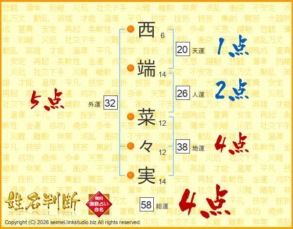 西端菜々実さんの総運は58画の4点!