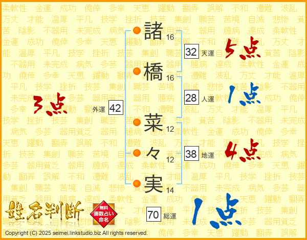 諸(16画)橋(16画) 菜(12画)々(12画)実(14画)