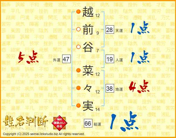 越前谷菜々実さんの総運は66画の1点!