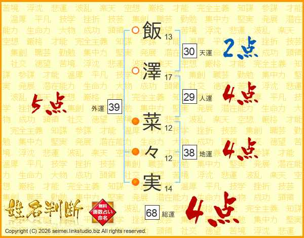 飯澤菜々実さんの総運は68画の4点!
