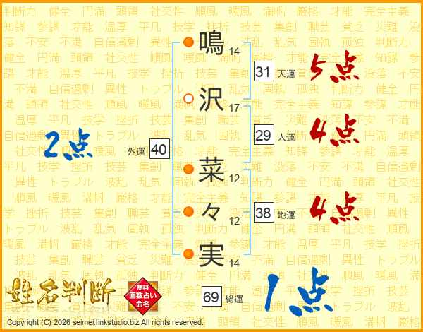 鳴沢菜々実さんの総運は69画の1点!