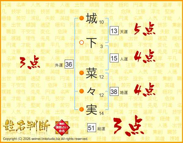 城下菜々実さんの総運は51画の3点!