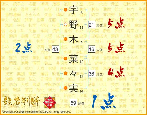 宇野木菜々実さんの外運は43画の2点!