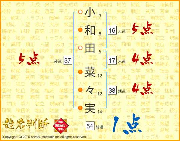 小(3画)和(8画)田(5画)  菜(12画)々(12画)実(14画)