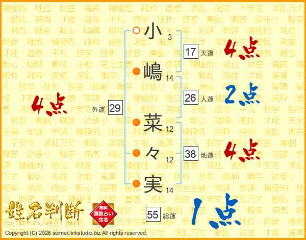 小嶋菜々実さんの総運は55画の1点!