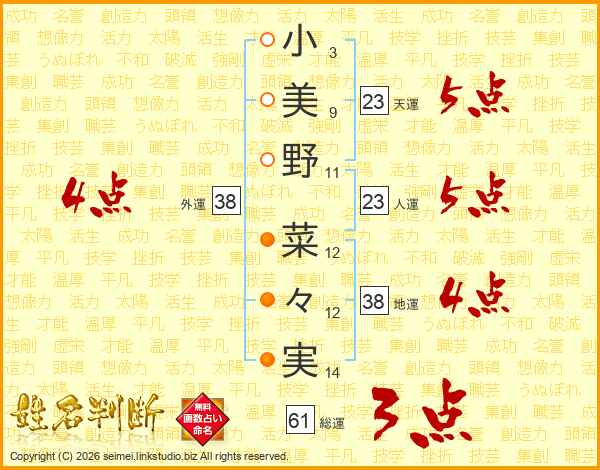 小美野菜々実さんの総運は61画の3点!