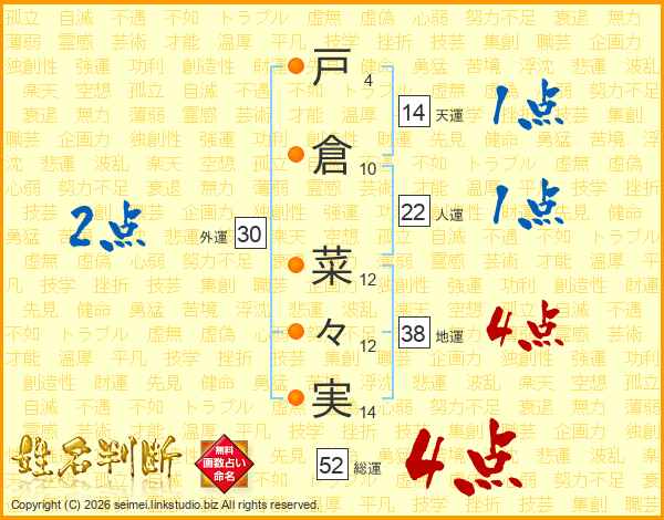 戸倉菜々実さんの総運は52画の4点!