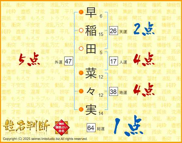 早稲田菜々実さんの総運は64画の1点!