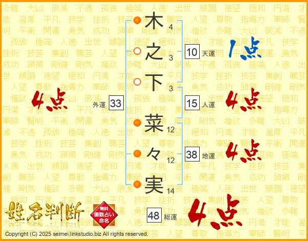 木之下菜々実さんの外運は33画の4点!