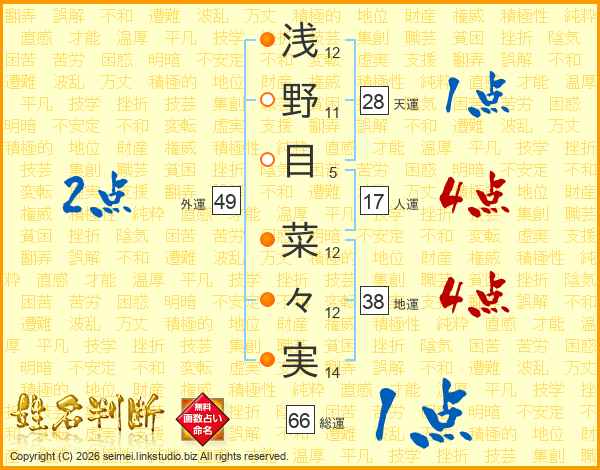 浅野目菜々実さんの総運は66画の1点!
