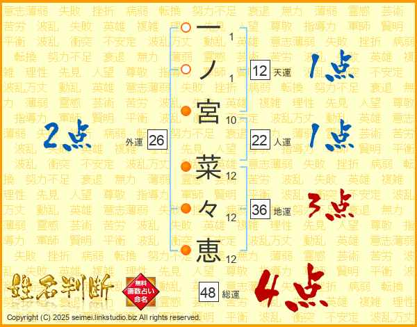 一ノ宮菜々恵さんの総運は48画の4点!