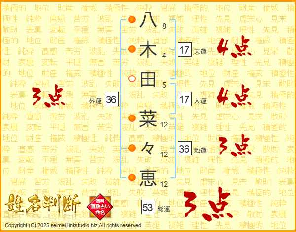 八木田菜々恵さんの天運は17画の4点!