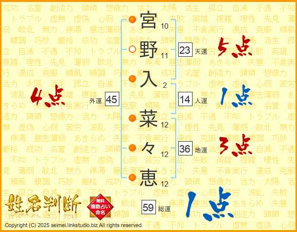 宮野入菜々恵さんの外運は45画の4点!