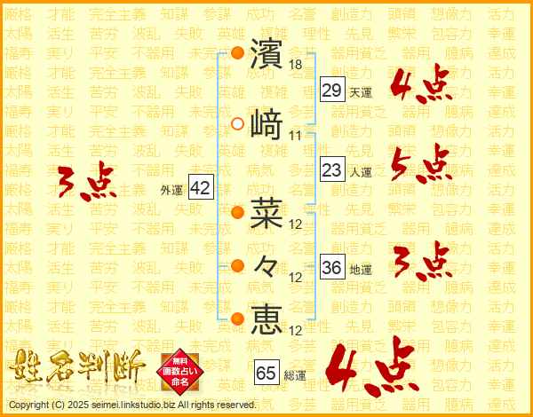 濱(18画)﨑(11画) 菜(12画)々(12画)恵(12画)