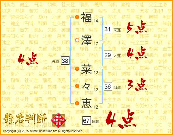 福(14画)澤(17画) 菜(12画)々(12画)恵(12画)