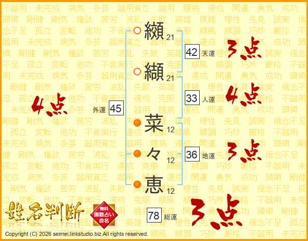 纐(21画)纈(21画) 菜(12画)々(12画)恵(12画)