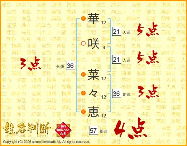 華咲菜々恵さんの外運は36画の3点