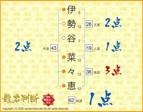 伊勢谷菜々恵さんの総運は62画の1点!