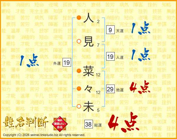 人見菜々未さんの総運は38画の4点!