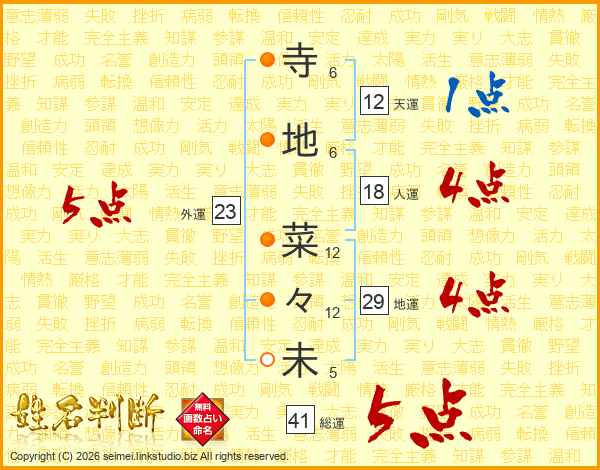 寺地菜々未さんの総運は41画の5点!