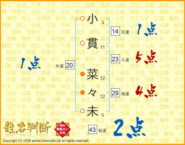 小貫菜々未さんの天運は14画の1点!