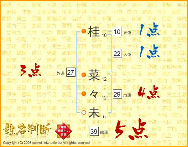 桂菜々未さんの総運は39画の5点!