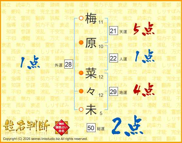 梅原菜々未さんの外運は28画の1点!